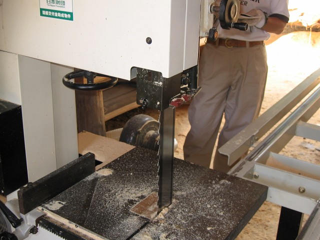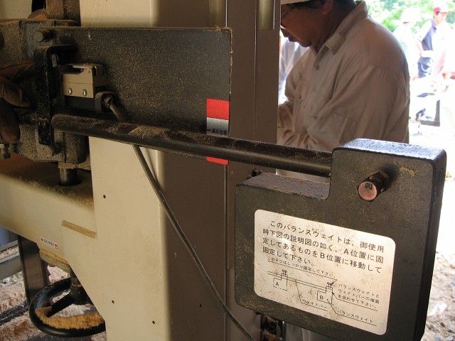 丸太をセットしたら、黒いアームでシッカリと固定します。 |
